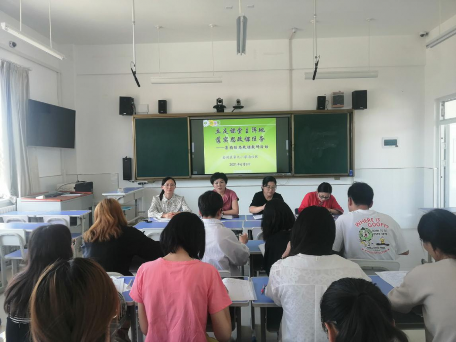 为扎实推进思政课实效,促进思政课教师队伍建设,提升思政课教研组教学研讨能力。结合庆祝中国共产党成立100周年,党员教师立足思政课堂教学,发挥党员先锋模范作用,6月8日上午,金凤九小教育集团特邀金凤区思政课教研员解玲老师到南校区开展思政课专题教学研讨活动,活动由南校区思政课教研组长毛菊冬主持,徐红梅书记、南北校区道法课教师参加。