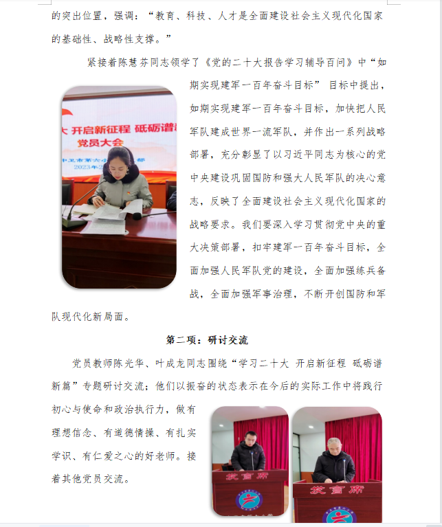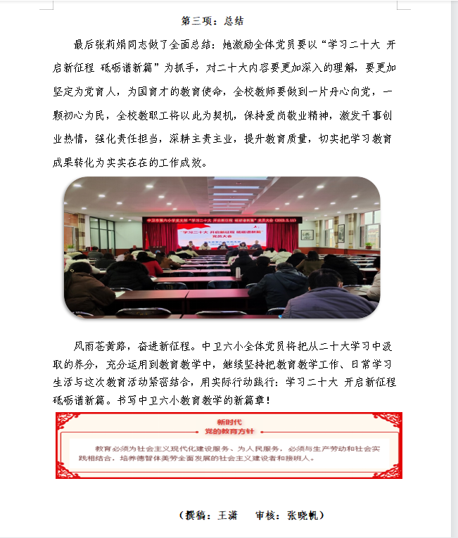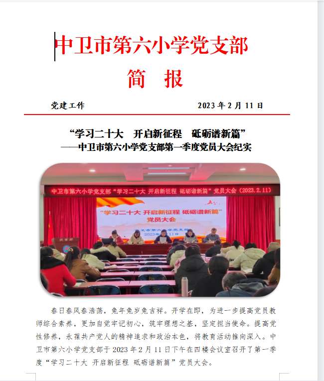 “学习二十大开启新征程砥砺谱新篇”——中卫市第六小学党支部第一季度党员大会纪实