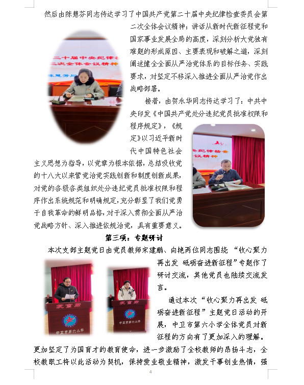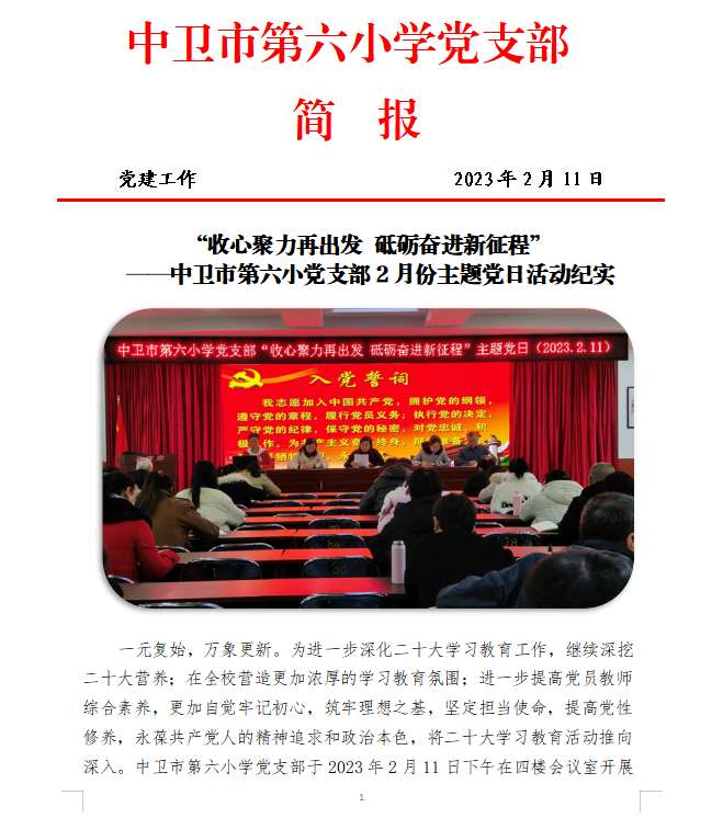 中卫市第六小学2023年第一季度主题党日活动简报