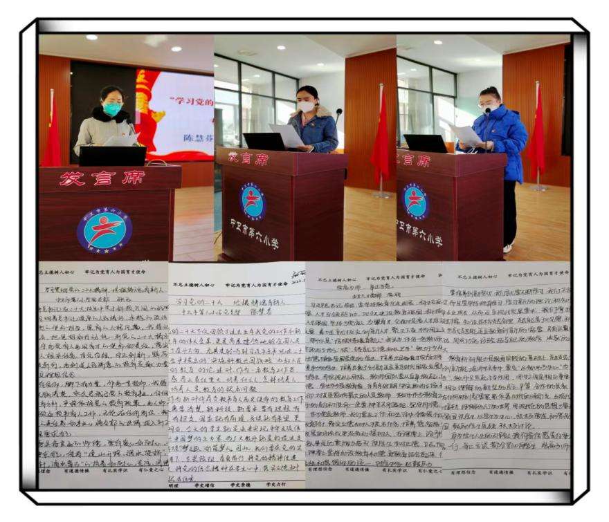 “愿以寸心寄华夏,且将岁月赠山河”,实现中华民族伟大复兴的中国梦,归根结底靠人才、靠教育。我们六小全体教师一定不忘初心,牢记使命,坚持为党育人、为国育才,以一颗红心,脚踏实地,修德立信,博学求真,肩负起新时代的新使命,踏上新征程,续写百年风华!