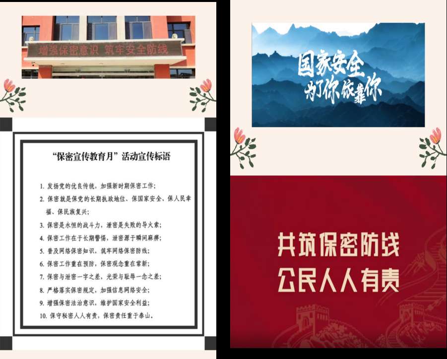 我校通过微信群、校园广播、宣传栏、LED显示屏循环播放标语等形式多渠道、多途径加大宣传力度,普及《国家保密法》法律法规知识,营造“保密意识人人有,保密法规人人守”的良好氛围利用主题党日活动、教师例会等会,组织全体教师观看国家安全教育专题片《光芒》。通过多种形式宣传学习,提高了全体师生的保密意识,有效巩固了校园保密防线,为共同维护国家安全奠定了基础。