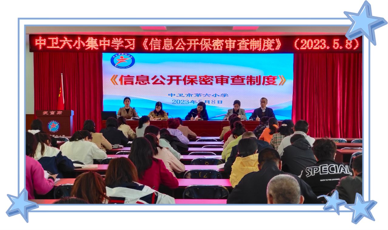 为进一步提升全体教师保密意识、增强保密工作能力,推动保密工作规范化、制度化发展,5月8日下午,中卫市第六小学党支部组织全体教师在四楼会议室学习《信息公开保密审查制度》,着力维护涉密信息安全。会议由张晓帆同志主持,全体教师参加。