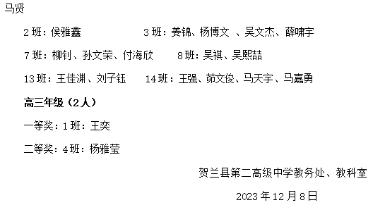 发布时间:2024-01-08 15:09 栏目:学生荣誉 发布单位:贺兰县第二高级中学 点击量:2463 【公开】