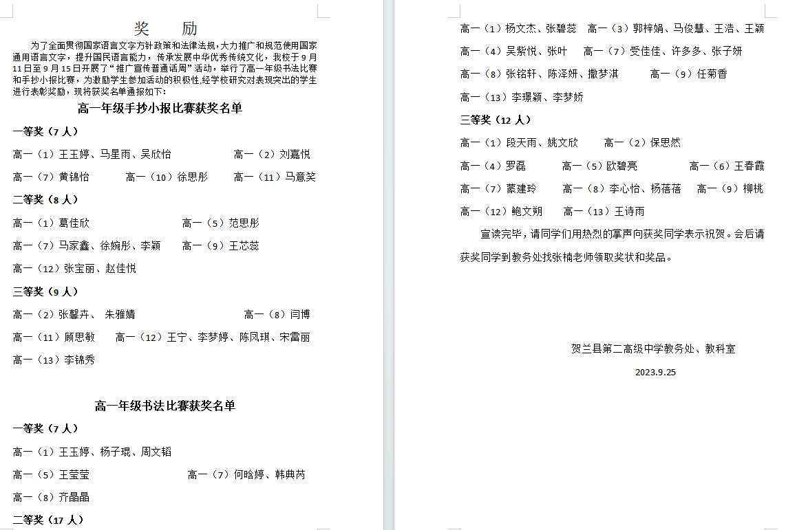 发布时间:2024-01-08 15:14 栏目:学生荣誉 发布单位:贺兰县第二高级中学 点击量:2778 【公开】