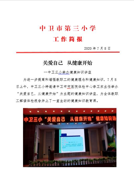中卫三小“关爱自己 从健康开始”健康知识讲座