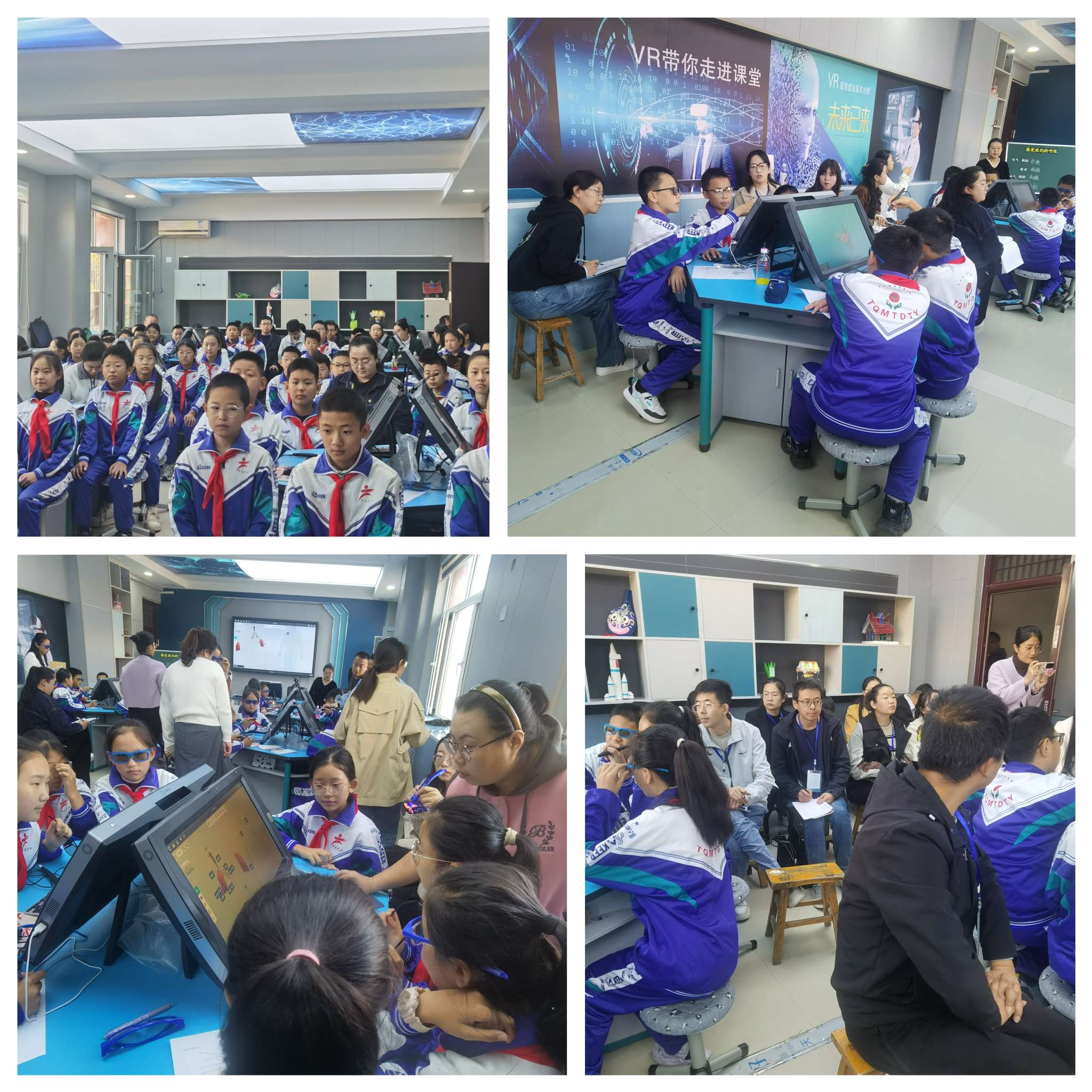上午第四节课,观摩团老师来到了VR室和孩子们一起听了韩亚玲老师执教的科学课——《感受我们的呼吸》。韩老师通过VR设备,引导学生进行各种有趣的实践活动。学生借助VR设备可以亲自感受呼吸时身体的变化,观察胸腔和腹部的起伏,还可以模拟人体呼吸实验,看不同器官在呼吸时的作用。所有在场的老师不禁感叹:这样的科学课,学生不仅学到了科学知识,还体验到了科学探究的乐趣。