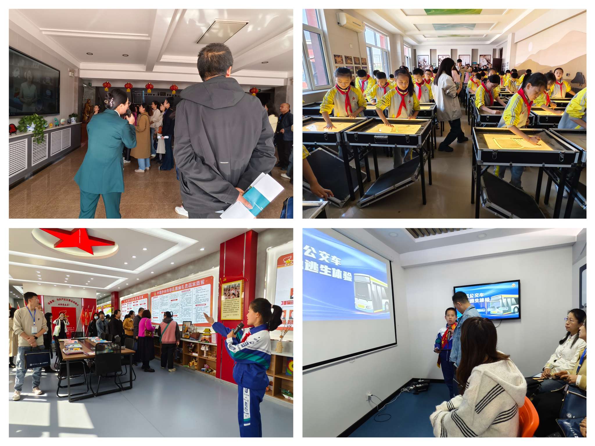 14日下午,在赵金艳副校长的带领下,观摩团的老师依次参观了学校的阅览室、少队室、VR室、沙画室、机器人室、红领巾电视台、心理咨询室。特别是消防体验室、红领巾电视台、机器人室的师生向观摩老师逐一介绍了功能室上课情况及基本使用信息。观摩团的老师或亲身体验,或与学生交谈,学习氛围浓厚。