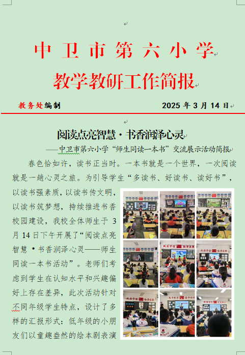 阅读点亮智慧·书香润泽心灵——中卫市第六小学“师生同读一本书”交流展示活动简报