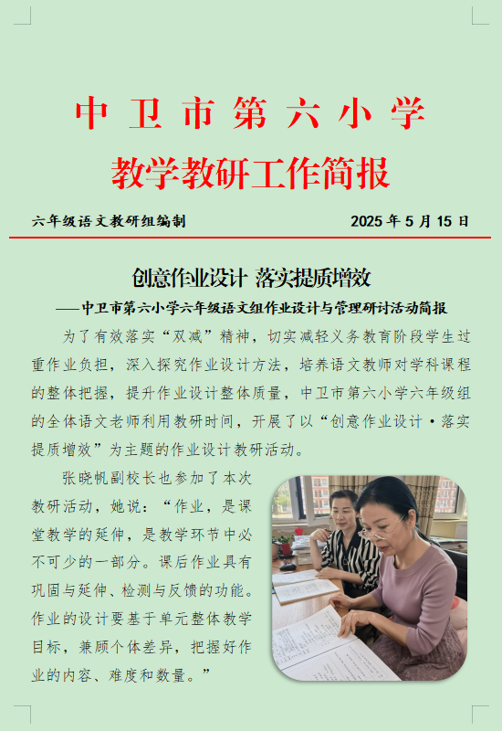 发布时间:2025-06-09 07:07 分类:学校教学教研 发布单位:中卫市第六小学 点击量:1347 【公开】