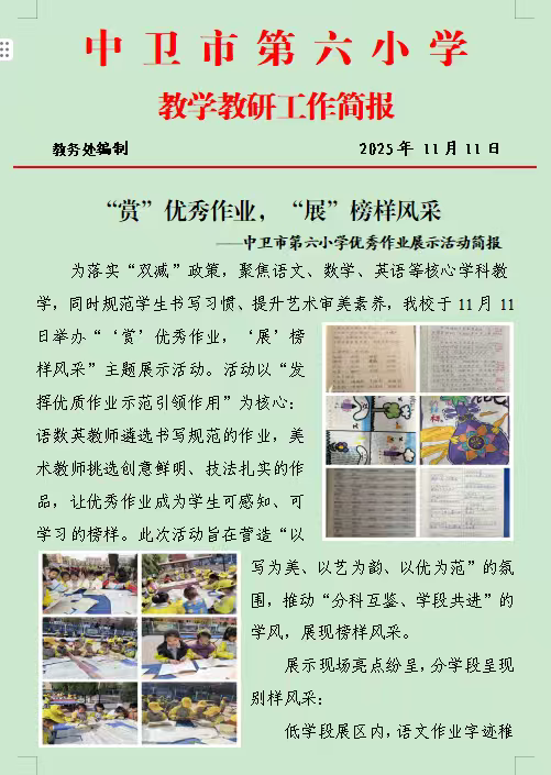 “赏”优秀作业,“展”榜样风采——中卫市第六小学优秀作业展示活动简报