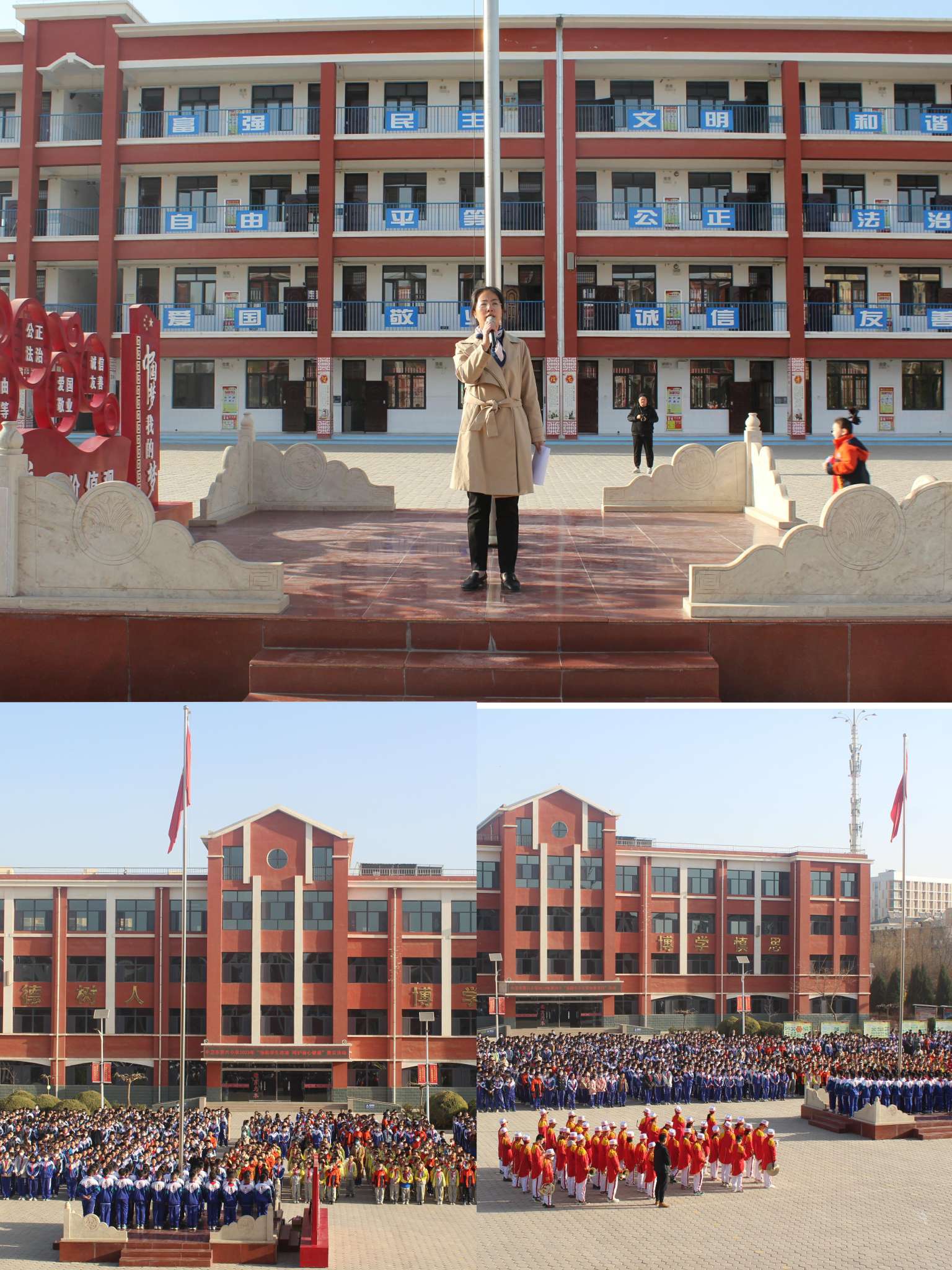 3月27日早晨8:00,伴随着嘹亮的国歌声,五星红旗冉冉升起。陈慧芬副校长进行了安全主题讲话,她指出:学校一直高度重视校园安全工作,一直为维护校园和师生的安全而不懈努力。在校园的安全保卫、师生的法制安全教育和管理方等方面进行了很多工作,特别就同学们的交通安全、食品卫生安全、消防安全、心理健康和日常行为规范等方面开展了一系列活动,提出来了一些明确具体的要求,并作了相关规定。随后,陈校长给孩子们讲授了如何自护,树立自我保护的安全意识最重要,充分认识到安全的重要性和紧迫性,时时注意安全,事事注意安全。最后陈校长呼吁:让我们学会敬畏生命,珍惜生命,用安全意识和安全技能,为我们自己幸福的生活构建出一道道最坚固的屏障!