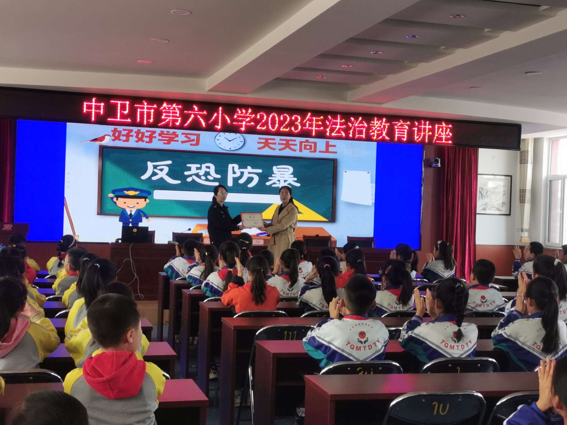 讲座开始前,陈慧芬副校长代表学校向文昌派出所社区民警王薇颁发了法治副校长聘书,全校师生对王薇副校长的到任表示热烈欢迎。